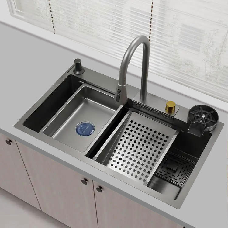 Apresentamos a nossa pia de cozinha com estação de trabalho – uma adição revolucionária às cozinhas modernas, combinando perfeitamente funcionalidade e estilo. Este design inovador de pia da MNBAM transforma o conceito tradicional de pia de cozinha em uma estação de trabalho multifacetada, oferecendo uma experiência culinária aprimorada.